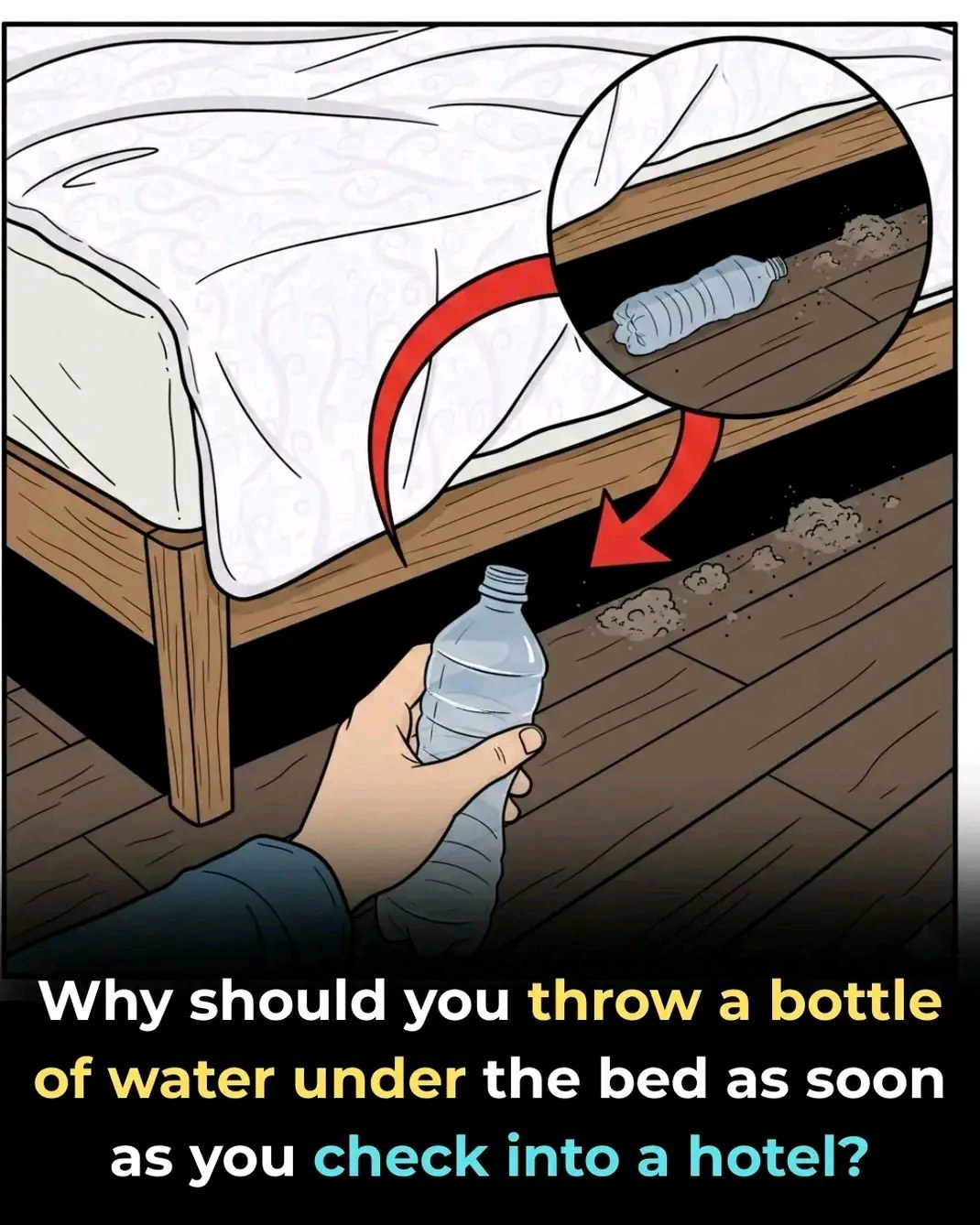 Frequent travelers have begun sharing a simple trick that could make a surprising difference in your safety when staying in a hotel: tossing a water bottle under the bed right after you enter your room. At first glance, the idea sounds strange. Why would anyone throw a bottle under the bed instead of placing it on a table or nightstand? But according to travel experts and seasoned hotel guests, this small action can reveal something important that many people forget to check.