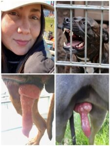A series of disturbing images circulating online has ignited widespread concern among animal welfare advocates and the general public. The photos show a dog confined behind metal bars, displaying aggressive behavior, alongside graphic images indicating a severe medical condition involving genital prolapse.